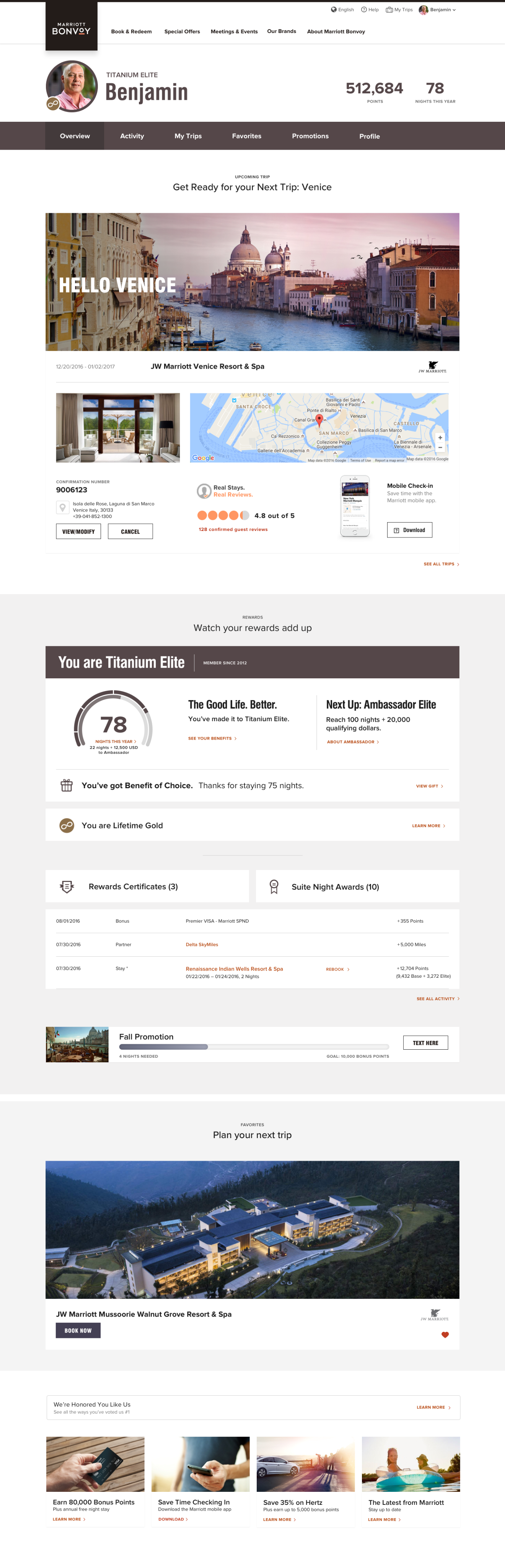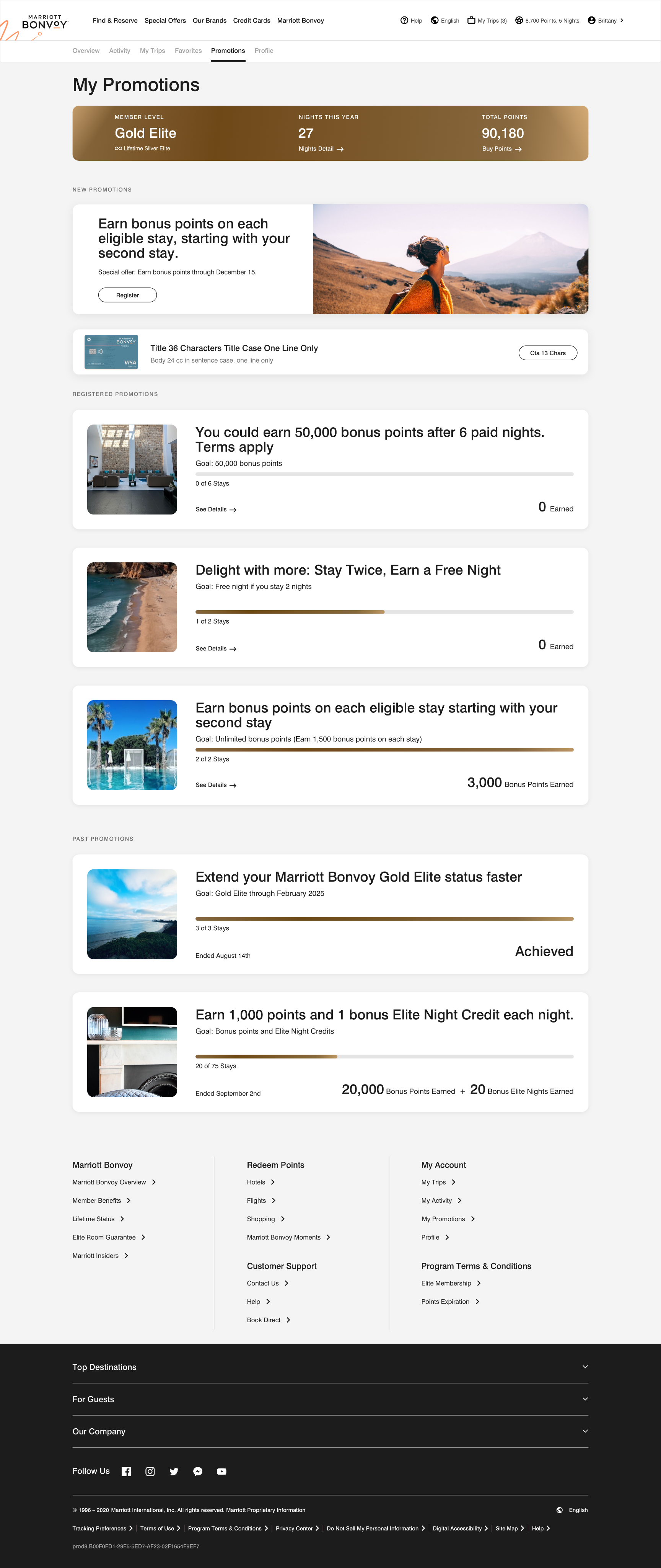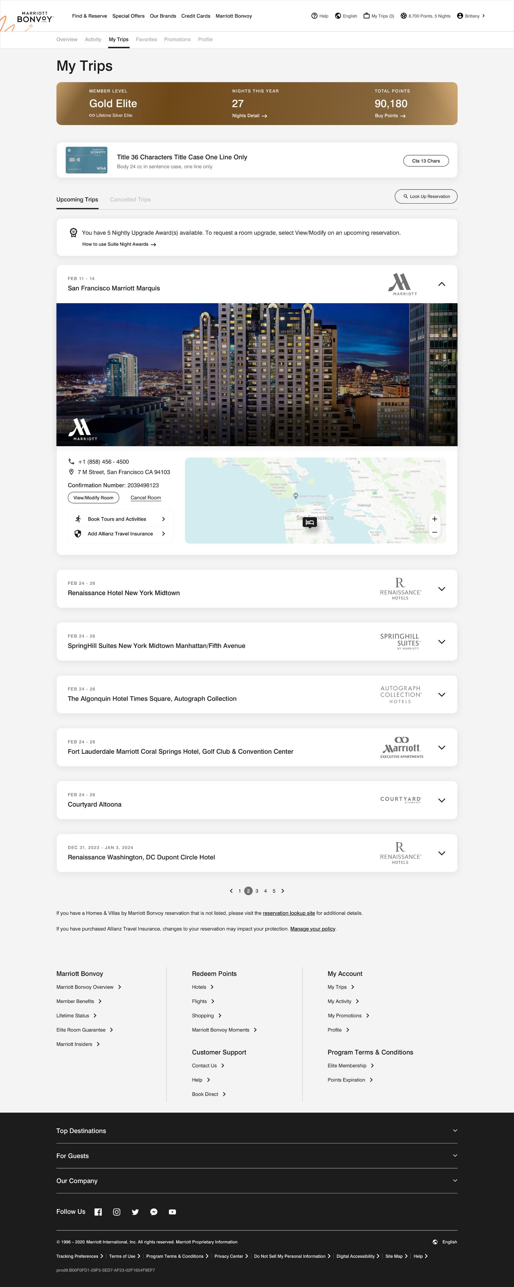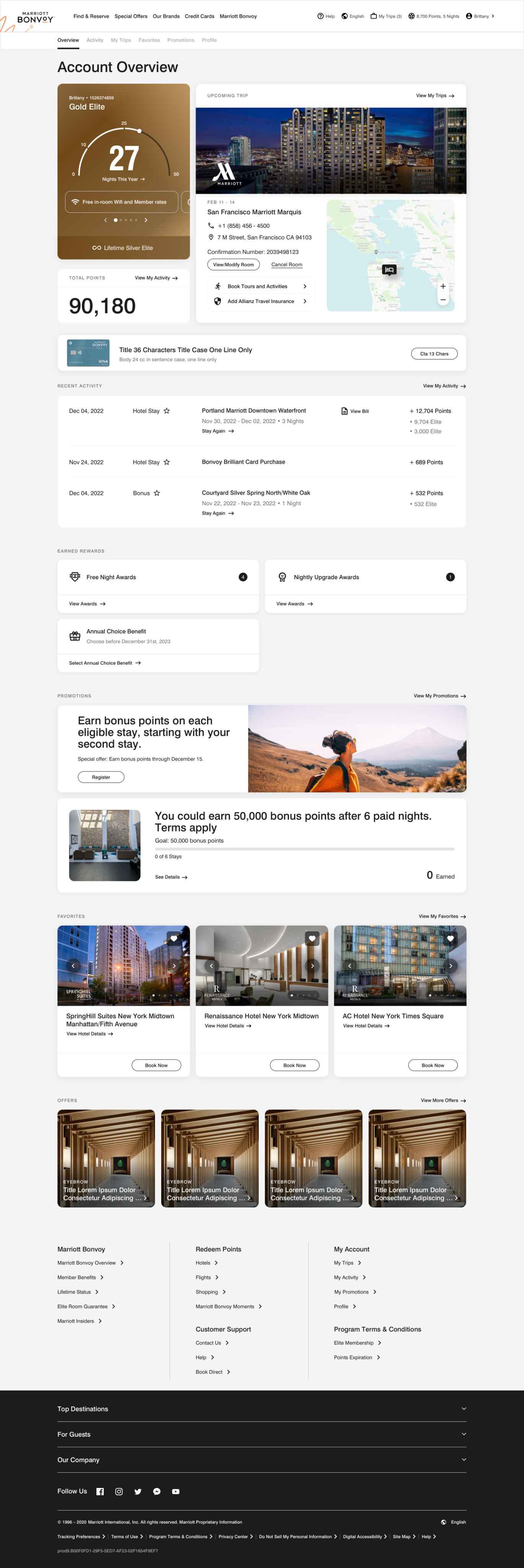 I was tasked with migrating the entirety of Loyalty from the Aries platform to the new improved Phoenix platform. I took into account every single facet of the membership experience including integrating mobile app in my decision making for consistency and seamless experience across both platforms. Backed by over 15 rounds of UX research, I was able to successfully redefine nomenclature, content hierarchy, and overall usability across all loyalty specific experiences. These ranged from the my account section which is specific to loyalty only to whole standalone experiences sprinkled across the entire Marriott experience.
