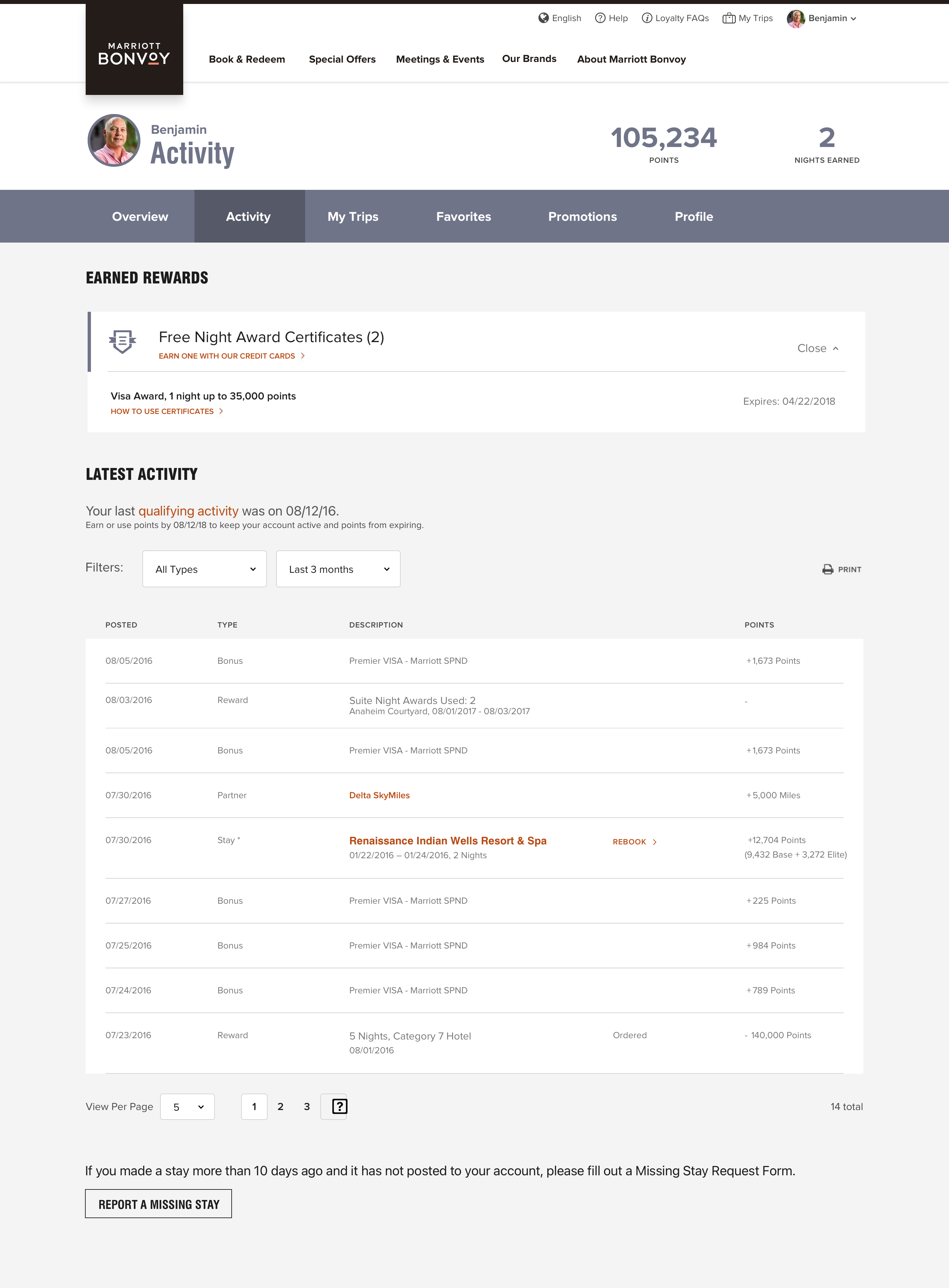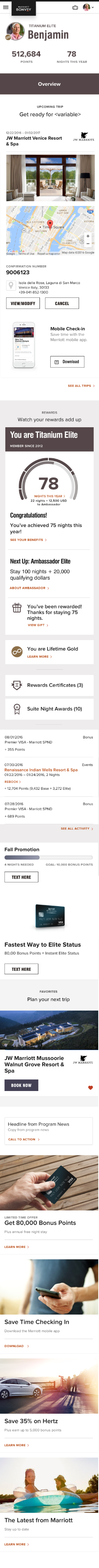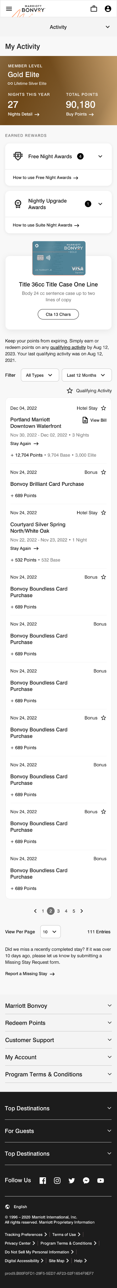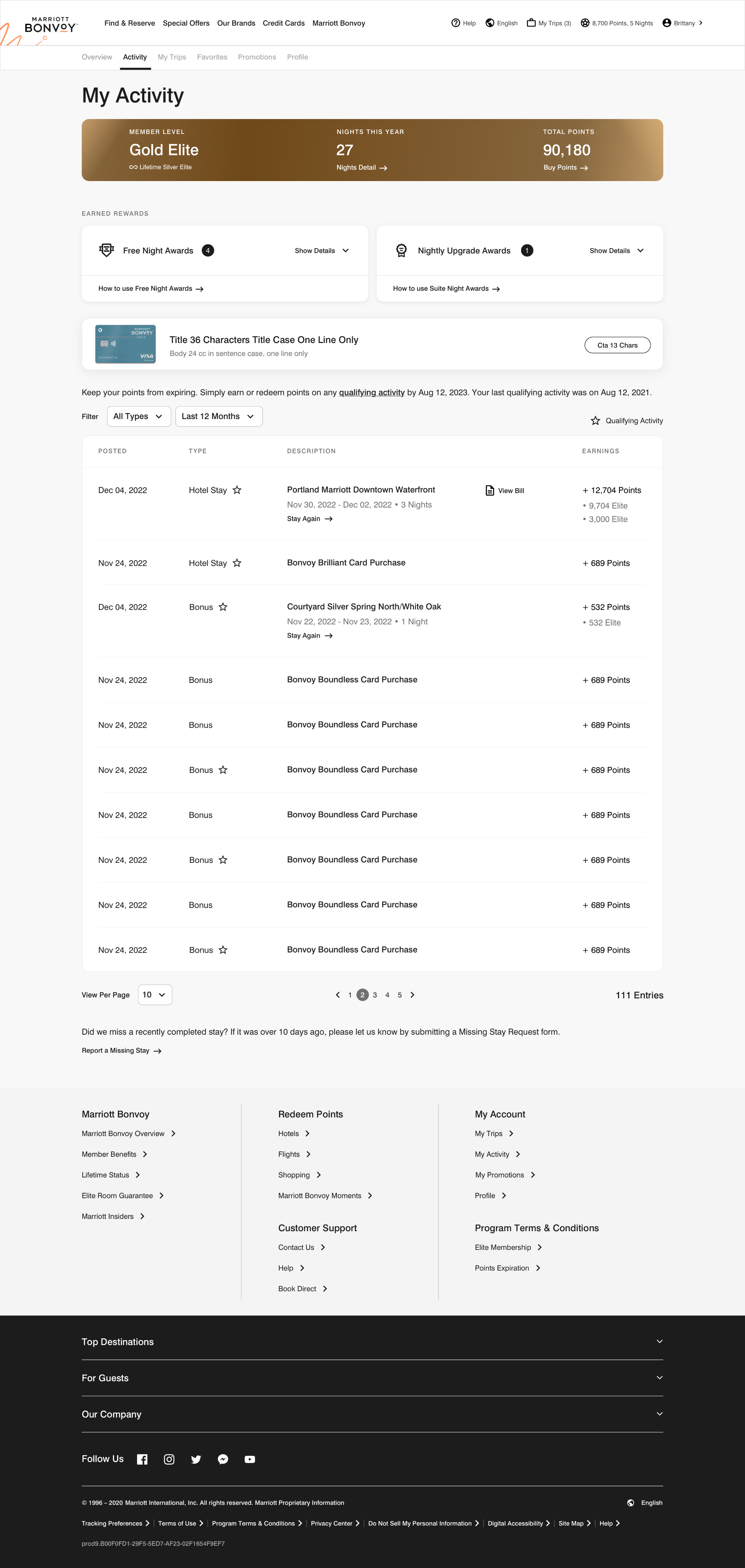 I was tasked with migrating the entirety of Loyalty from the Aries platform to the new improved Phoenix platform. I took into account every single facet of the membership experience including integrating mobile app in my decision making for consistency and seamless experience across both platforms. Backed by over 15 rounds of UX research, I was able to successfully redefine nomenclature, content hierarchy, and overall usability across all loyalty specific experiences. These ranged from the my account section which is specific to loyalty only to whole standalone experiences sprinkled across the entire Marriott experience.