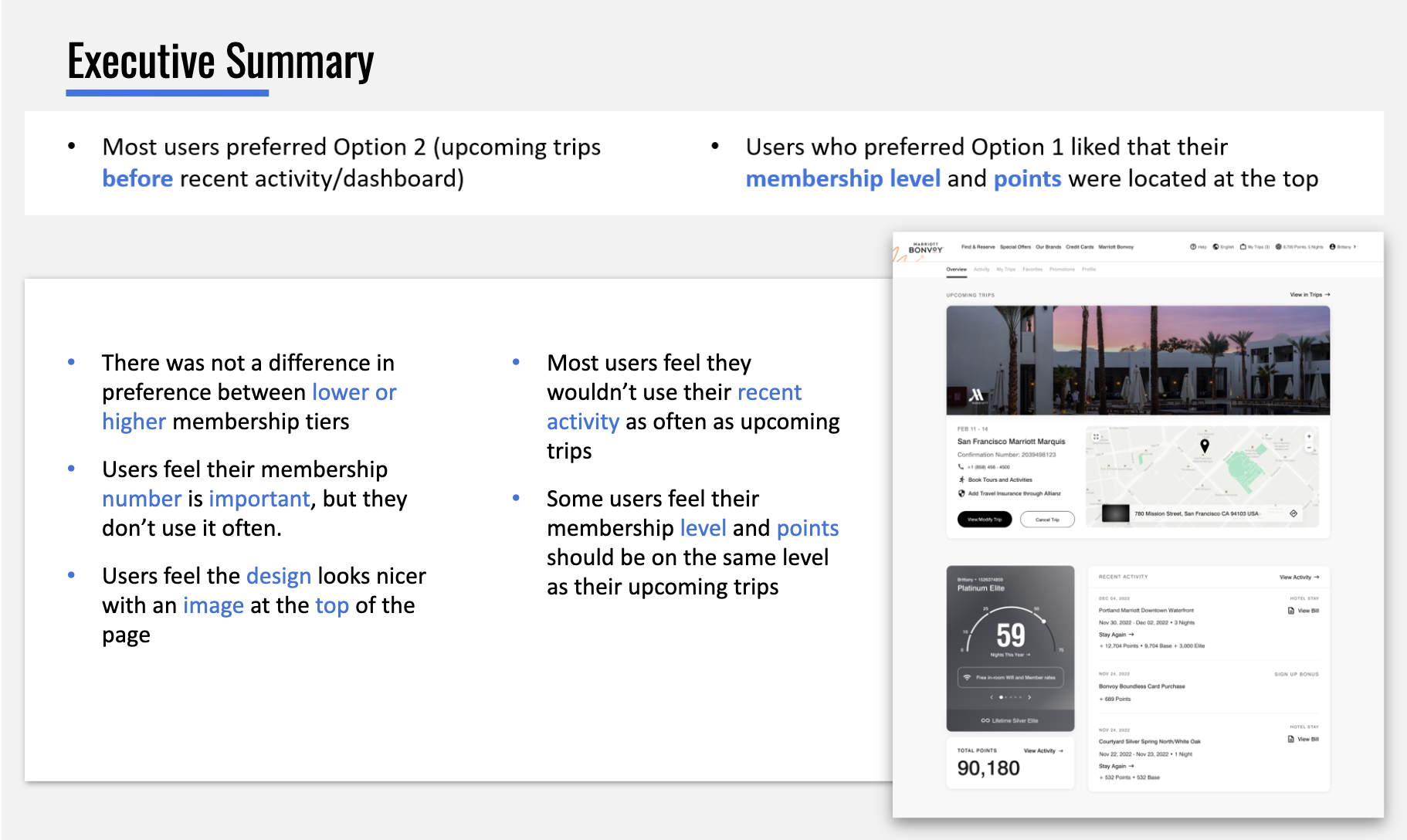 Research showed users found this information very useful so there was no need to rearrange the information but there was room to improve the visual design to be more modern and reflect the member level color to improve brand identity.